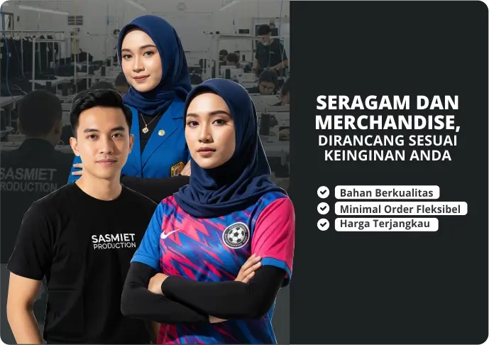 Sasmiet Production siap membantu kebutuhan sablon & merchandise custom Anda. Kami hadir dengan bahan premium, harga terjangkau, dan proses produksi yang transparan.